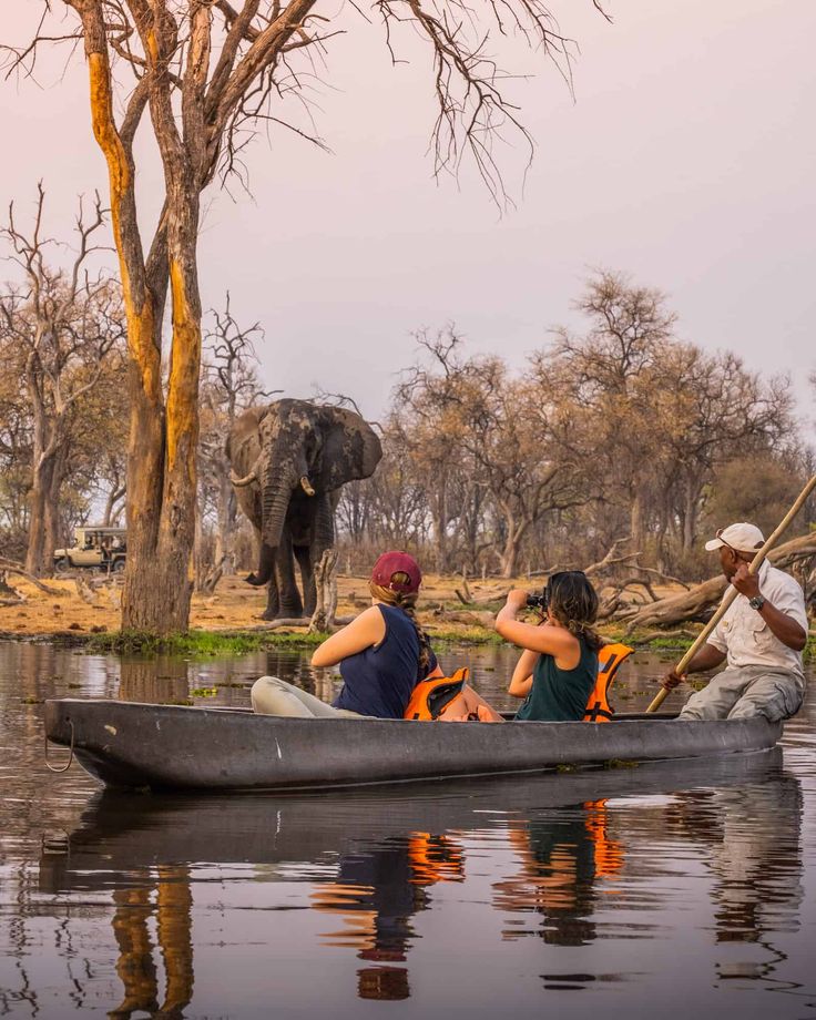 A full day at Elephant Pan Tented Camp immerses you in Botswana’s Khwai Private Reserve. Start with a thrilling morning game drive spotting lions, leopards, wild dogs, and elephant herds along the Khwai River. Return for brunch and relaxation by the plunge pool or viewing deck, watching animals at the waterhole. Afternoon options include another drive or a guided bush walk for intimate tracking. At dusk, enjoy a night drive for nocturnal sightings like leopards and hyenas. End with sundowners, dinner by the fire, and peaceful sleep to wild sounds. Slip into the camp’s hides anytime for close-up photography.